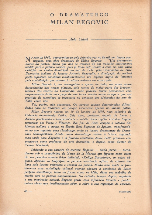 ALDO CALVET Dionysos Ano I - Outubro de 1949 - N1